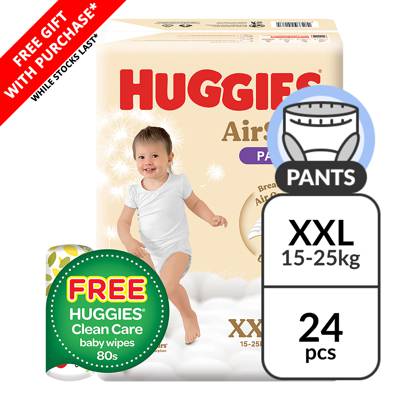 Huggies AirSoft Pants - XXL (15-25kg) + Free Baby Wipes