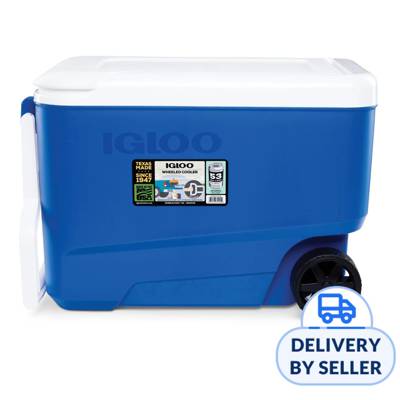The Igloo 38 QT Hard Sided Roller Rolling Cooler is best classic cooler on wheels! Bring your cold drinks along to any adventure or outdoor event with ease in the Wheelie Cool 38-Quart Cooler by Igloo. This cooler can hold up to 53 cans, giving you plenty of space to store a variety of drinks for everyone at your party. A tow handle makes it easy to pull this cooler along behind you even when it is filled to the brim. When you leave the house for adventures, don't leave your Wheelie Cool from Igloo behind. This traditional Igloo wheeled cooler makes taking drinks and snacks to the beach, a picnic or the kids' games a breeze. Ideal for a couple or small family.