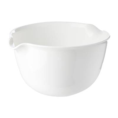 White plastic mixing bowl . size: 18.8 x 17 x 10cm. Capacity: 1.3l. Made in Japan.