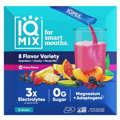 - • Designed to rapidly rehydrate your body while keeping you energized, focused & and thinking clearly. IQMIX tastes better and rehydrates your body faster than water and other electrolyte drinks. This powder drink mix can be added to any glass or bottle of water to deliver better hydration and improved mental performance. Each electrolyte drink is packed with Lions Mane powder, to combat brain fog and act as a focus aid, and Magtein Magnesium L-Threonate, to support mental clarity and mood. IQMIX combines your electrolyte supplement, magnesium supplement, brain support & mood support supplement, sodium & potassium supplement in one.