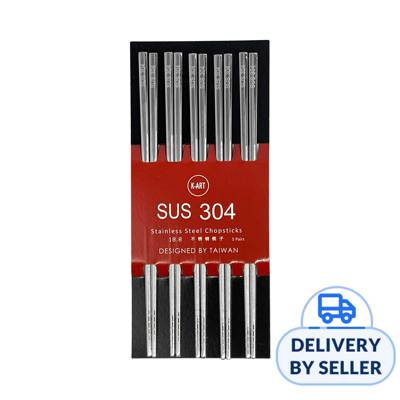 A pack of 5 pairs of stainless steel chopsticks