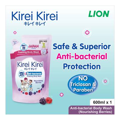 KIREIKIREI ANTI-BACTERIAL FOAMING BODY WASH REFILL- NORISHING BERRIES 600ML