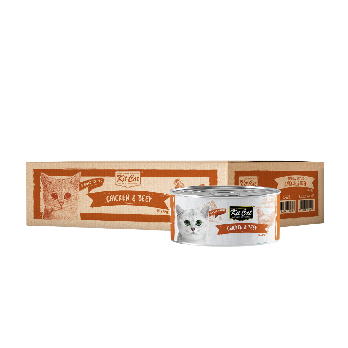 Kit Cat wet food was created by our nutritionists who are also cat lovers and made with the goodness of carefully selected natural ingredients which contains no added colours or preservatives. Our Kit Cat 100% grain free diet offers your cat a pH level balance wholesome nutrition to support a healthy lifestyle, reducing risk of kidney stones and urinary tract infection. With selected quality deboned meat containing essential vitamins, our Kit Cat formula also has an optimal ration of omega-3 to omega-6 fatty acids that promotes a healthy heart, skin and coat for your cats. In addition, this diet contains Fructooligosaccharides which promotes a healthier digestive track and taurine for healthy eyes.