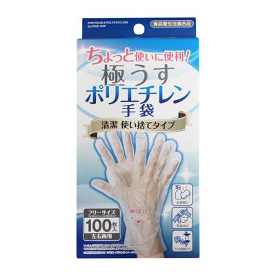 Free-size. Embossed polyethylene gloves. For multiple use such as cleaning or dying or hair. Entire length 28.5cm Length of middle finger 8cm, Contains 100 sheets