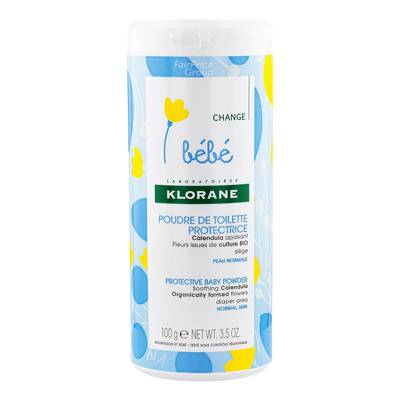 - Babies often suffer from discomfort around the bottom. To soothe and protect their skin, Klorane Baby mineral Talcum Powder absorbs moisture, even in the folds of the skin.Calendula flower extract immediately soothes redness and minor irritations**. The delicate fragrance of Klorane Protective Talcum Powder encourages relaxation and leaves baby with a soft, dry bottom. Suitable from birth and tested under paediatric control*.