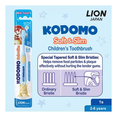 - KODOMO Soft & Slim Children’s Toothbrush (2 - 6 years) is specially designed for children to clean their teeth thoroughly and prevent early cavities with the below features: