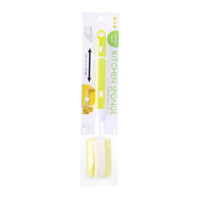 Sponge for bottle with extension light green handle. Purpose: To use for cleaning bottles, teapots and others.