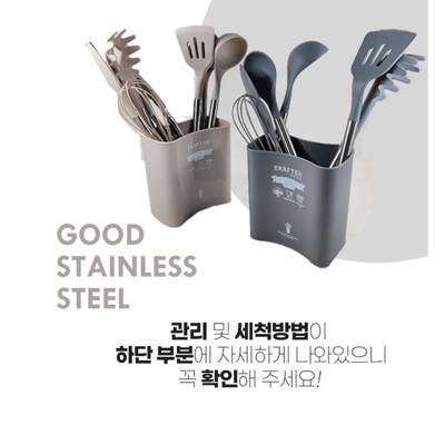 Krafter Korea 9PCS Cooking Utensils Set Non-Stick Spatula Shovel Stainless Steel Kitchenware with Storage