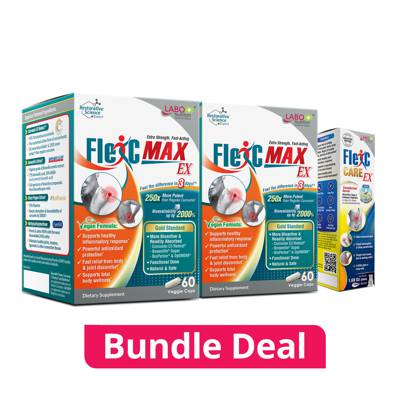 FlexC MAX EX is an unrivaled vegetarian formula made with curated bioactive extracts in functional dosage for maximum efficacy. Pairing the synergistic anti-inflammatory and antioxidant properties of Boswellin Super Boswellia serrata Extract, THC Curcumin C3 Reduct Turmeric Root Extract, BioPerine Black Pepper Extract and OptiMSM. FlexC MAX EX supports speedy relief for the joints, body and overall health.