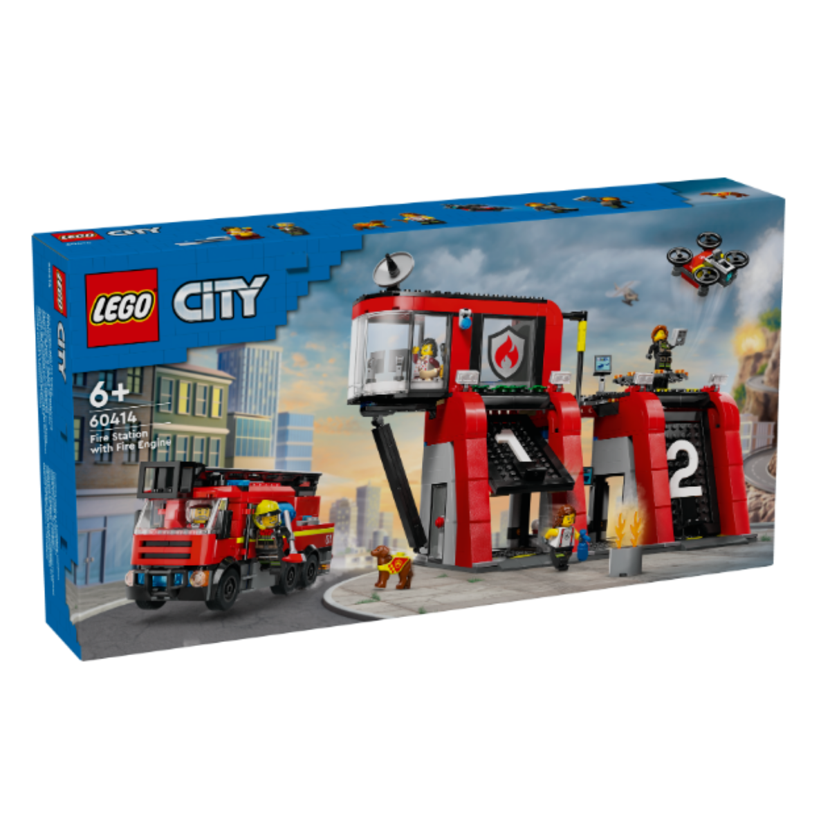 Spark kids’ imaginations with the LEGO City Fire Station with Fire Truck (60414) toy playset for ages 6 and up. The station features a modern control center, kitchenette and sleeping quarters above an equipment area and 2 garages with tall up-and-over doors. The set also includes a toy drone and a cool fire engine with a modular ladder and extinguisher attachments. Mobilize the 5 fire-crew minifigures and fire dog figure for hours of action-packed firefighting role play. Kids can use this set with others from the LEGO City range (sold separately) for even bigger adventures! This emergency rescue toy includes an easy-to-follow printed building guide and step-by-step 3D instructions in the LEGO Builder app. Here kids can zoom in and rotate to visualize models from all angles as they build. LEGO City Fire playsets deliver feature-rich land, air and water toys for imaginative play without limits.