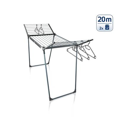 - The Leifheit Pegasus 200 Solid Black clothes airer is a real all-rounder among drying aids. Very practical: The fold-out side wings are 107 cm high, so that even long items such as towels or trousers can dry without touching the floor. The two wave-shaped lines on the outside of the wings are ideal for attaching clothes hangers. Five ‘windproof’ clothes hangers that clip firmly into place are included with the free-standing drying rack – perfect for windy days.