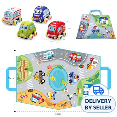 Child-safe Design for Baby: This soft car toy set is made of soft fabric and stuffing sponge, which is non-toxic, durable, and easy to clean. Besides, the kid car toy set does not contain any small parts, providing a safe environment for your kid to play in. These car toys are so soft that children will not be hurt if they are hit by toddler car toys. 4 Unique Car Toys for Babies: The vehicles are pull back cars (No batteries required), soft, cloth-covered vehicles, and an activity city map storage bag. These are small and lightweight while cute and easier to grab for little hands. Cute combination of cars: Including police car, fire truck, taxi, ambulance. Perfect Educational Toy Cars: Our baby toddler car toys are brightly colored and beautifully cartoon designed. It can stimulate children's imagination, cultivate curiosity, promote hand-eye coordination, and improve self-cognition. Our soft baby toys make an ideal gift. Babies can have endless fun in pull back cars toys racing wi