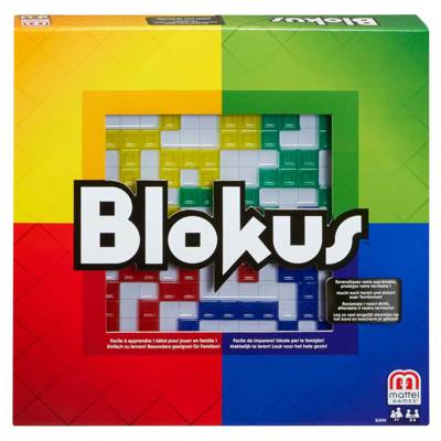 Stake your claim and protect your territory with Blokus game! there's just one rule: each piece you play must touch at least one other piece of the same colour, but only at the corners! it takes less than a minute to learn but has depth to challenge your whole family. Each player gets a set of 21 pieces - red, blue, green, or yellow - then takes turns placing them on the board. The goal is to fit the most pieces on the board. The game ends when no one can place any more pieces. Everyone counts the squares in their unplayed pieces and the player with the lowest score wins! easy to learn and great for families, Blokus is the fast-paced strategy game that delivers "one rule, endless possibilities!"