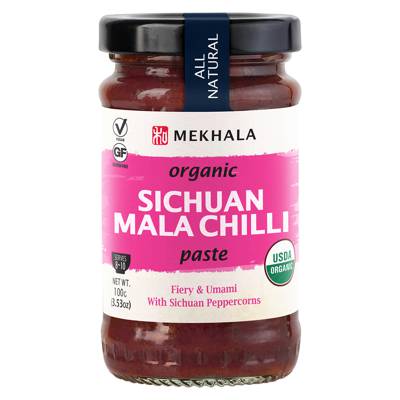 The hottest new paste in the market! A healthier version of a popular spicy Chinese cooking paste from the Sichuan region. Made from dried chillies, spices and tongue-tingling Sichuan peppercorns. (Mala means spicy and numbing in Mandarin). Use our fiery chile paste to stir fry vegetables, noodles and proteins, or even to add zing to soups.