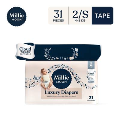- Only Millie Moon Luxury Diapers have CloudTouch TM Softness for ultimate comfort. Made with a high-GSM topsheet to instantly absorb moisture, Millie Moon Luxury Diapers are designed to keep skin dry and help reduce rashes. For diapers so soft they feel like a cloud and fit like a dream, choose Millie Moon.