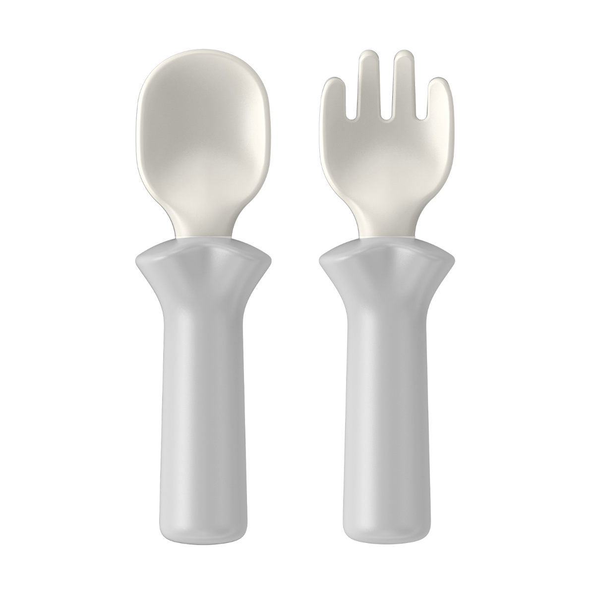 Make mealtime fun and independent! If your baby has mastered MODU'I's baby spoons, it’s time to move on to their first cutlery set. This spoon and fork duo is designed for little hands and gentle on growing gums — perfect for exploring noodles and self-feeding. Ergonomically shaped to support a confident grip, both pieces feature an elevated handle design that keeps the tips off the table — minimizing mess and keeping things more hygienic. Thoughtfully made for eager toddlers ready to take charge of their meals.