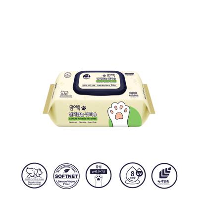 Unlike commonly used wet wipes for humans that may cause irritation due to their acidity, these neutral wet tissues are formulated to be gentle on your pet's skin. Remove odour effortlessly with the excellent deodorizing properties of these wipes, made with safe ingredients for worry-free use. Give your pet the care they need with Mom-Ae-Sok Pet Wipes. - Dermatologically tested for pets skin safety - Passed skin irritation test for human skin - Purified water with 8 steps purification process - Made from viscose rayon fabric - Natural and Biodegradable - Cleansing, deodorization treatment for pets - Worry-free and Scent-free - Two years shelf life - Large sheet size of 200x160mm (+/-5mm) - Thick and embossed texture with 55 gsm - 70 sheets per pack - Made in Korea Experience the difference with All Mom-Ae-Sok's pet wipes, designed with green technology in mind. Our wipes are created using environmentally friendly packaging paper, making them a guilt-free choice for pet parents. Keep your pet clean and happy with our convenient and eco-conscious wipes.