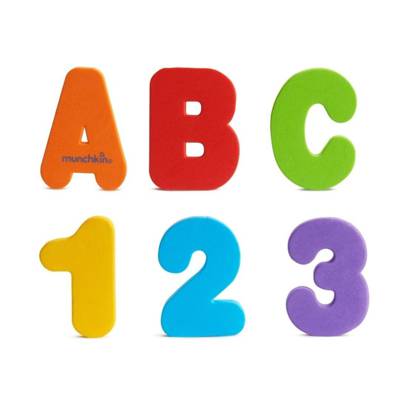 - This set of 36 floating letters and numbers comes in six fun colors, clings to bathroom walls when wet, and provides endless opportunity for bathtime learning. You can help your child identify the alphabet, learn to count, spell simple words or group by color. An added bonus? The foam is soft, durable and non-toxic. So splish-splash, when they're taking a bath... throw in a little education, too.
