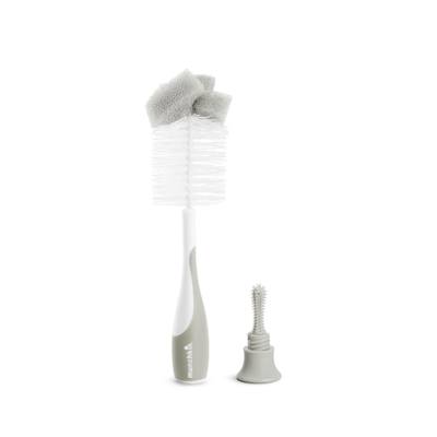 - Munchkin's Sponge Bottle Brush makes bottle cleaning quicker and easier, so you can spend less time at the sink and more time with your precious little one. This 2-in-1 brush is a bottle brush and nipple brush in one, so you can clean every inch of your baby bottles with just one handy tool. The sponge tip helps you reach all areas with a sudsy swipe, while the non-slip handle gives soapy hands the right grip while cleaning. The only thing dropping will be the amount of time you spend cleaning bottles! The brush base sits upright on your countertop when you're done, airing out quickly and keeping your brush far away from germs.