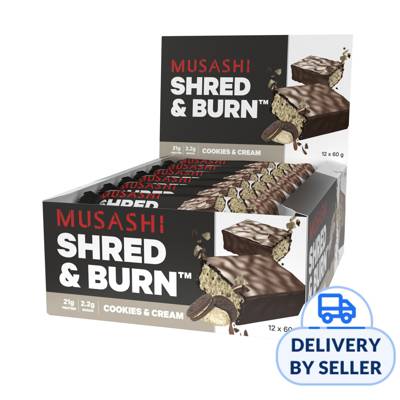 Musashi Shred & Burn protein bar is designed to provide 20g of high quality protein and also contains a powerful blend of Garcinia Cambogia, Green Tea extract and L-Carnitine. It is good for muscle growth & muscle recovery and maintaining a lean physique.