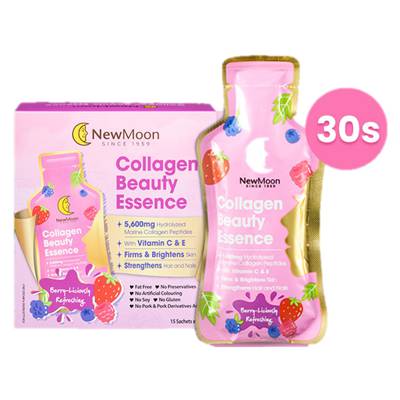 - NEW MOON Collagen Beauty Essence 5,600mg Collagen With Vitamin C & E Berry-Liciously Refreshing Sachet (To Firms & Brightens Skin, Strengthens Hair & Nails)
