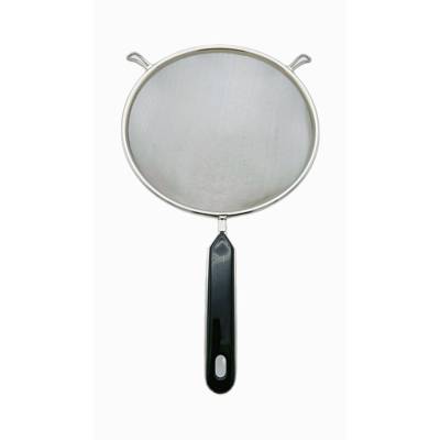 Sainless Steel Strainer. Diameter: 18Cm. Length: 33cm. Usage: Is metal kitchen sieve that chefs and home cooks use to separate liquids from fine solids in cooking. Made in Japan.