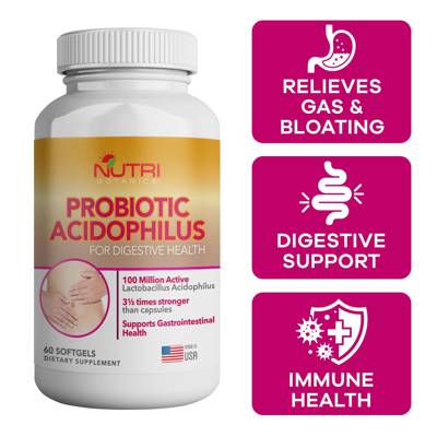 Nutri Botanics Probiotics Acidophilus contains 100 million of lactobacillus acidophilus in each softgel to help support and maintain a healthy digestion system
