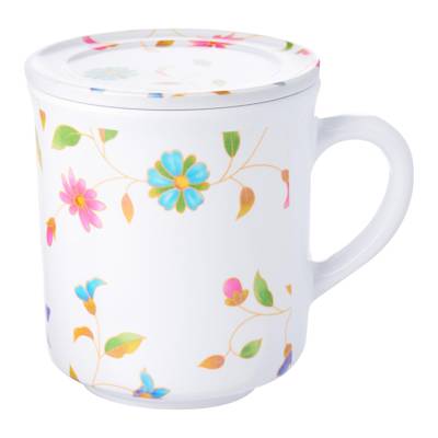 Melamine cup with cover. Size:8.5cm dia. Capacity: 300ml.