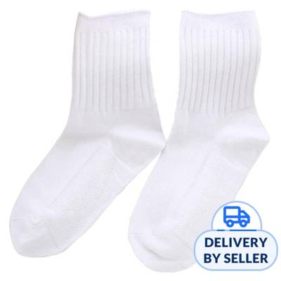 School sock suitable for schooling children. Comes in 3 different sizing. Stretchable and breathable which allows children to feel comfortable when wearing it. Size: 22-24. Suitable for shoe size 31-36. Material: 80% Cotton, 17% Nylon, 3% Spandex. Color: White.