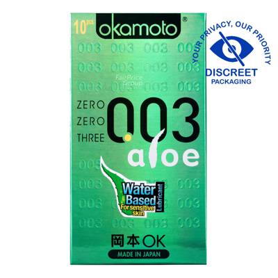 Okamoto 003 Aloe and its water-based lubricant is less messy, less sticky and washes off easy, leaving no residue. It is enriched with natural aloe essence that prevents irritation and maintains moisture, with no annoying rubber smell.