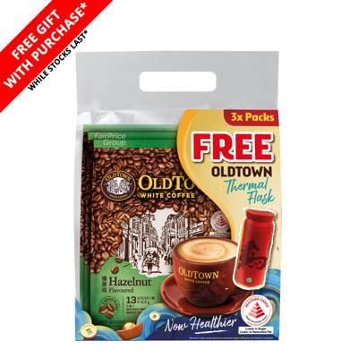 Old Town 3 in 1 Instant White Coffee - Hazelnut + Thermal Flask