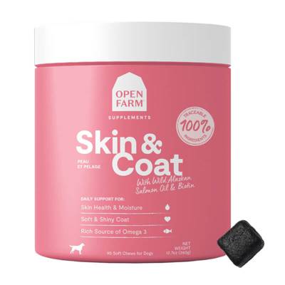 The delicious Open Farm Skin & Coat Soft Chew is formulated to help support and promote a soft and shiny coat using only 100% traceable and vet-recommended functional ingredients.