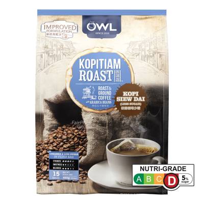 Kopi Siew Dai, meaning ‘less sweet’ in local lingo, this milky coffee with 25% less sugar is suitable for those who are sugar-conscious. The ground coffee portioned in convenient sock-like cotton filter bag for easy preparation and fresh brew taste that is smooth and aromatic.