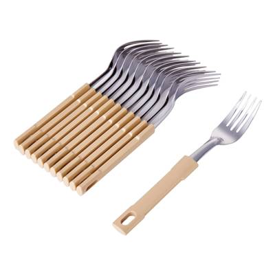 Stainless steel dessert fork (beige) 12pcs set, length: 19.3cm.