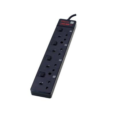 - - This is one of PowerPac's most popular Safety Extension Sockets! The full range, which comes in white or black, comprises power cable lengths of 3 m, and is equipped with between 1 to 6 electrical sockets on the powerboard. This model in black, PP3884BK, comes with 4 electrical sockets. The individual socket switches are individually LED-lit.