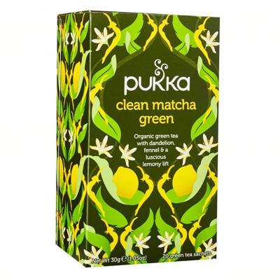 Clean Matcha Green tea is a fresh burst of pure organic green tea with a luscious lemony lift and the finest matcha powder. Organic, Vegetarian, Vegan, Wheat free, Gluten free, Dairy free, Soya free, Nut free, Kosher, FairWild