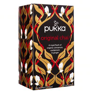 Original Chai tea is a royal flush of organic cinnamon, cardamom & ginger. Is Organic, Vegetarian, Vegan, Wheat free, Gluten free, Dairy free, Soya free, Nut free, Kosher