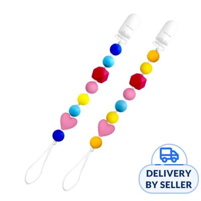 Included 2 pacifier clips BPA free Attach to baby's clothing, keeping pacifiers clean and close Attach easily to any item of clothing, without risk of damaging the fabric Comes in a variety of different colors and styles, to mix or match with dummies Fits most brands of pacifiers, soothers and teethers