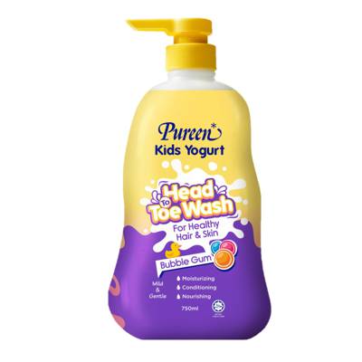 Pureen Kids Yogurt Head To Toe Wash is enriched with natural yogurt, which helps to nourish and moisturize skin, as well as condition hair. Your hair and skin will glow with health and vitality. Thesensational invigorating Bubble Gum scent and rich lather will add more fun and excitement to kids' bath time. Ideal for adult too
