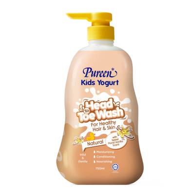 Pureen Kids Yogurt Head To Toe Wash is enriched with natural yogurt, which helps to nourish and moisturize skin, as well as condition hair. Your hair and skin will glow with health and vitality. The sweet, powdery vanilla scent and rich lather will add more fun and excitement to kids' bath time. Ideal for adult too.