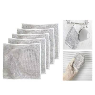 Magic Mesh Cleaning Cloth Multifunctional Non-Scratch Wire Dishcloth Rag Kitchen Steel Wire Dishwashing Cloths Kitchen Non-sticK 1pack x5pcs