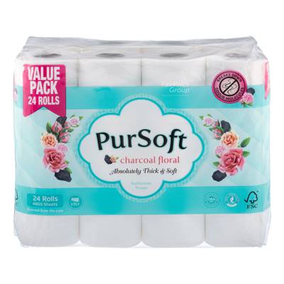 Pursoft Bathroom Tissue Pulp Charcoal Floral (3 ply)