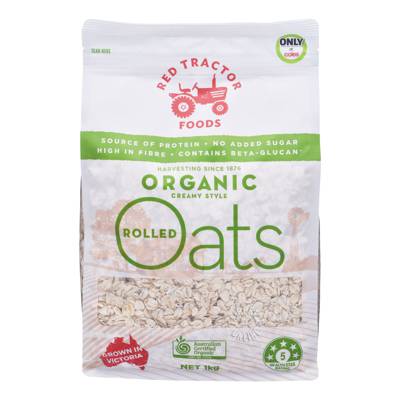 Red Tractor oats are steam stabilised (kiln free) to deliver a smooth, creamy texture. Our oats are 100% wholegrain, rich in fibre and protein and contain beta-glucan which helps reduce blood cholesterol. Red Tractor Organic Oats are farmed in the rich, volcanic soils of Victoria’s Strathkellar region at the foothills of the Grampians. Our oats are grown by fifth generation farming family, the Nagorcka’s, who first started harvesting Australian oats in 1876. Red Tractor rolled oats are perfect for breakfast in a porridge or muesli or for baking in muffins, biscuits or your favourite cake.