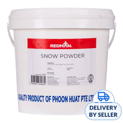 - • This product can be used especially on warm goods or food items that are slightly wet as the snow powder will not dissolve, but will instead remain on the surface as a topping.