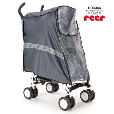 This raincover can be used universally on pushchairs with hard shells or soft carry-cots, as well as sports pushchairs. It ensures additional safety with reflective elements that have a child friendly design. The fully enclosing elastic band allows for fast mounting and removal. Additionally, the extra-large viewing window encourages optimal air circulation and direct contact with the child. It includes a storage bag for easy, waterproof storage of the raincover. Colour: Anthracite. Material: Polyester, PEVA. Contents: 1x Raincover and 1x Storage Bag.