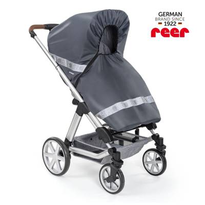 This raincover can be used universally on pushchairs with hard shells or soft carry-cots, as well as sports pushchairs. It ensures additional safety with reflective elements that have a child friendly design. It has a practical zip fastener for easy access to the child, as well as a fully enclosing elastic band for fast mounting and removal. The large viewing window encourages optimal air circulation. It includes a storage bag for easy, waterproof storage for the raincover. Colour: Anthracite. Material: Polyester. Contents: 1x Raincover and 1x Storage Bag.