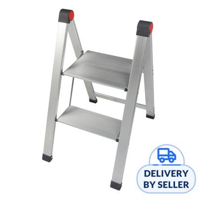 Rene Hashigo, our 2 Step Stool is ultra-slim, ultra-safe and ultra-durable. This super slim 2" profile slides easily into any pocket of space in your home, be it between shelves, behind doors or even your cupboards. Unfold it to reveal its extra large and sturdy steps that provides added safety and support.