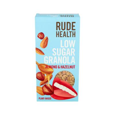 Try our low sugar granola, theres so much texture and flavour that you wont notice that weve taken out some of the sweet stuff. Dont worry, theres nothing artificial replacing it, just Mediterranean Almonds and Turkish Hazelnuts, baked with our oats for a satisfying delicious crunch.
