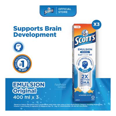 - *Based on pharmacokinetics study done to determine and compare the plasma omega 3 (DHA & EPA) levels after ingestion of Scott's Emulsion and a non-emulsified matched free flowing cod liver oil.