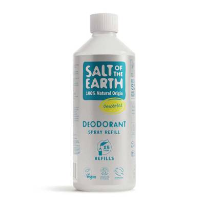 - - Opt for sustainability and practicality by refilling your Salt of the Earth Natural Refillable Deodorant Spray Unscented with our 500ml refill option. Each refill allows you to replenish your deodorant up to five times, reducing both plastic waste and expenses.